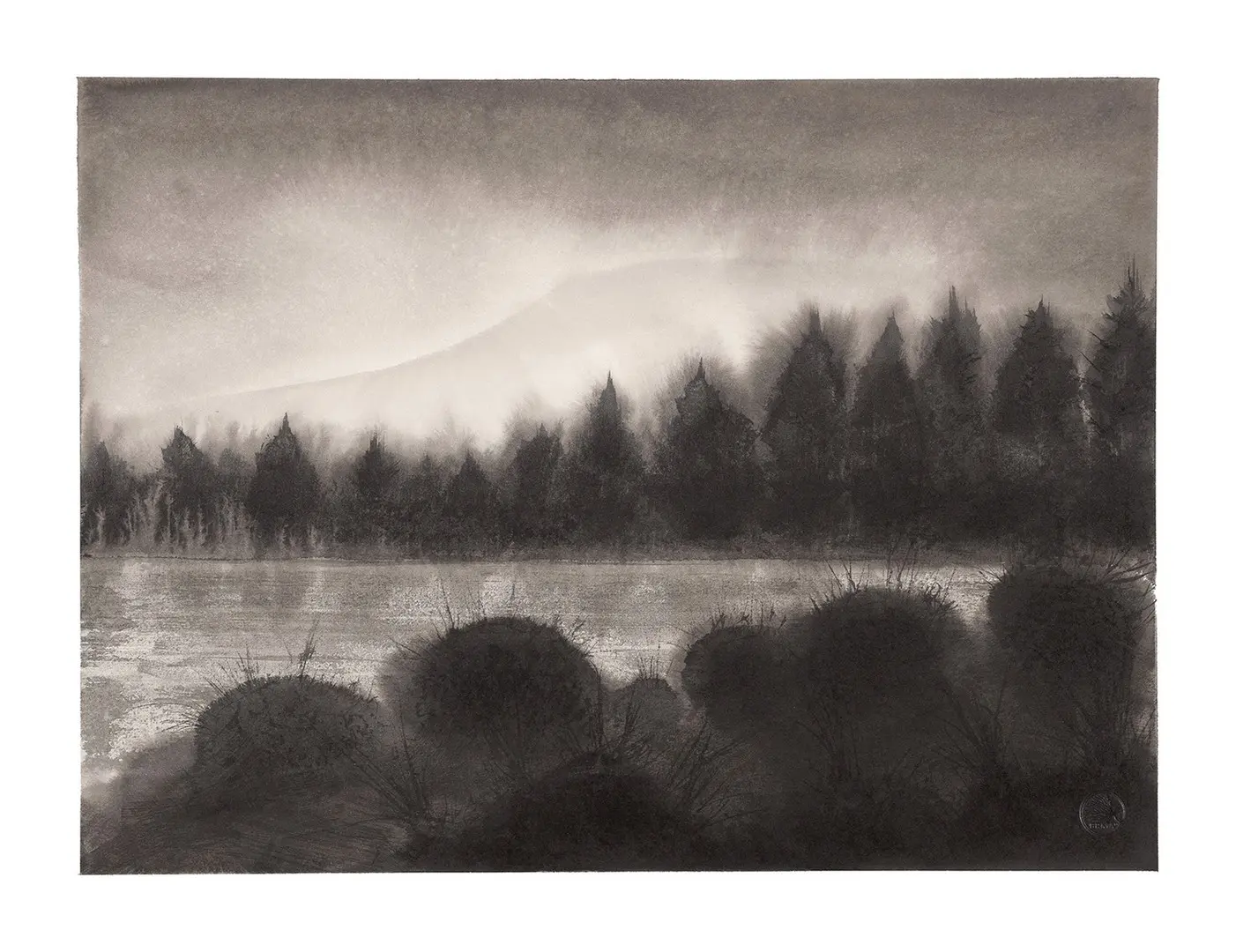 When attempting to paint emotion and feeling I often find it is the loosest, most spontaneous, most relaxed and often the least considered or interfered with marks that often capture those sentiments best. However it must also be said that this is an inherently risky business. I fully admit to ‘most‘ of my explorations ending with myself and an embarrassing amount of ruined paper laying in a soggy blackened heap in the corner! I am forever grasping at shadows, waiting for the faint outline of a hill or bank of trees to emerge from the chaos and disorder of my alchemy of solutions, and all too often losing it again as it dries and moves past that perfect point I was chasing!“